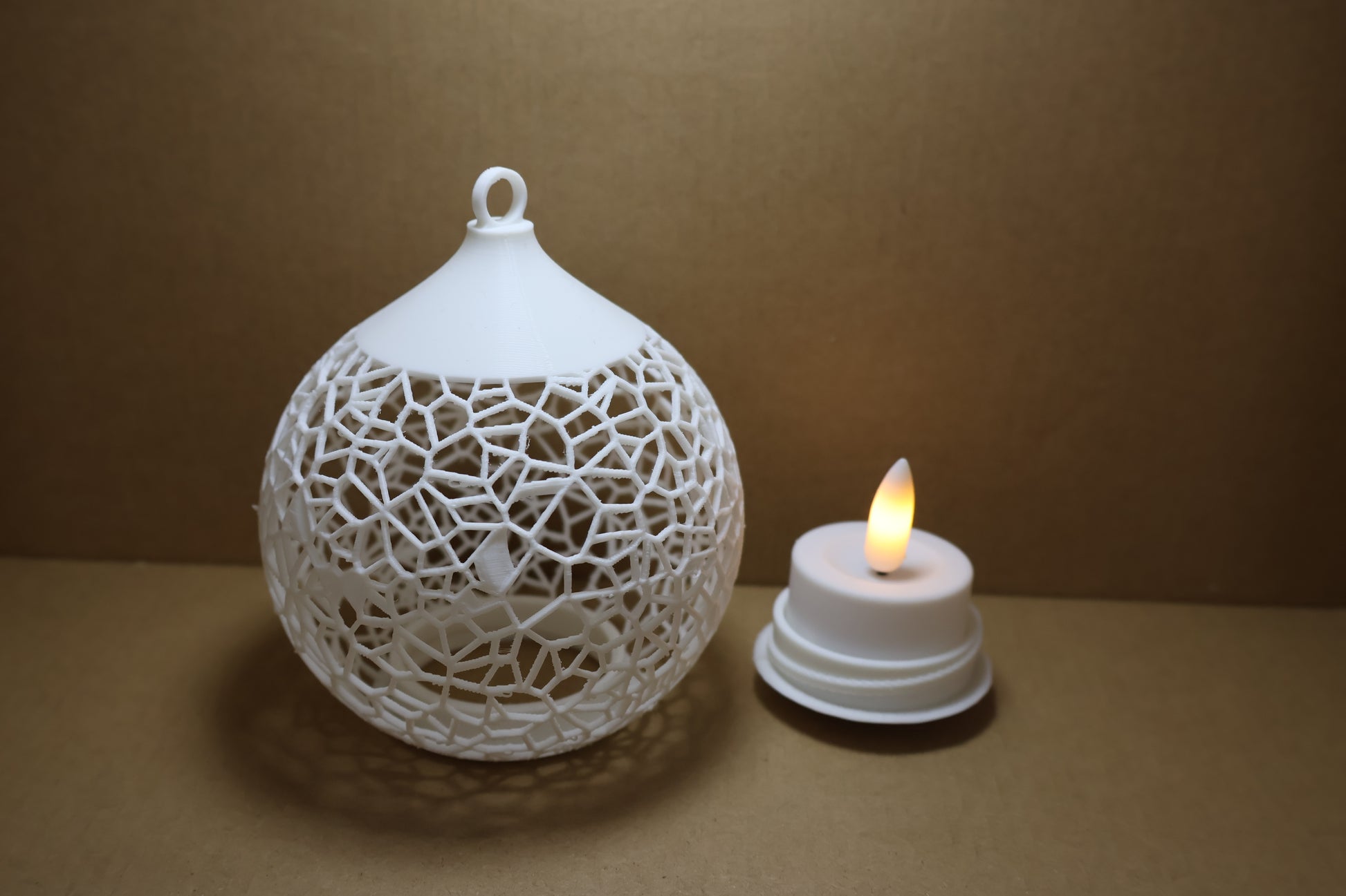 Den elegante kugleformede lanterne spreder et varmt, hyggeligt lys gennem det detaljerede mønster, som kaster flotte skygger på omgivelserne. Perfekt til vindueskarmen, spisebordet eller som en del af din juledekoration.